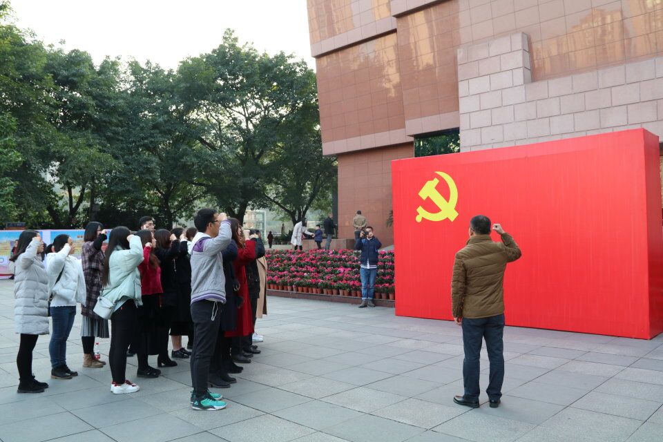 中午12时,车辆抵达重庆,办理入住和午餐后,车辆即刻前往红岩村。下午2时,师生们开始在红岩村考察学习。在讲解员的带领下,师生们首先参观了饶国模旧居、中共中央南方局和八路军重庆办事处旧址。在这里,师生们聆听了两个感人故事:重庆爱国女实业家饶国模同志支持党在其大有农场修建办公住宿大楼并于建国后将300亩农场及场内全部房舍无偿捐献给政府;受南方局直接领导经营华益公司为党筹措经费的肖林、王敏卿夫妇一次向中共中央上交约合12万两黄金的资金和其它固定资产折价1000多万美元,仅给自己留下3块银元做纪念,这些感人举动让师生们深深领悟了什么是“立党为公、忠诚为民的奉献精神”。 在办事处旧址,师生们参观了毛泽东同志在重庆谈判期间工作和住宿的房间,由衷钦佩毛泽东同志不惧个人安危赴渝谈判的魄力,预先安排好中央工作的缜密和运筹帷幄通过上党战役促谈的睿智。在这里,同学们了解了南方局书记周恩来发出的的“三勤三化”工作指示和所写的《怎样做一个好的领导者》报告提纲。“三勤三化”即“勤学、勤业、勤交友;社会化、职业化、合法化”,该策略巧妙地把公开工作和秘密工作、合法斗争和非法斗争结合起来。《怎样做一个好的领导者》报告提纲则概括地总结了党的领导工作方面的经验,对党的领导干部做好领导工作具有重要的指导意义。南方局和周恩来同志的创造性工作对于启发师生们的改革创新意识具有很强的借鉴价值。同学们还看到了办事处和南方局工作人员开展丰富多彩文体活动的照片,由衷感叹他们的革命乐观主义精神和对身心素质的重视。随后,师生一行自行参观,在经过饶国模墓和红岩公墓时,师生们分别驻足并鞠躬致敬,深切缅怀为革命作出突出贡献的红岩英雄。之后,师生们来到红岩革命纪念馆。由于纪念馆2-3楼装修改造,师生们参观了4楼的《众志成城御外侮——大后方民众抗日救亡掠影》展览,直观感受了波澜壮阔的抗战历程和伟大的抗战精神,深刻感受到抗战精神就是以爱国主义为核心的伟大民族精神。最后,18位师生党员来到纪念馆前,面向党旗庄严宣誓,这一刻,同志们的誓言更加响亮,初心更加清醒,信念更加坚定,复兴中华的使命感更加强烈。下午5时,师生们结束了红岩村的考察学习。
