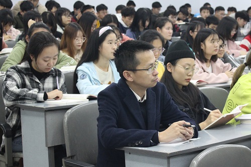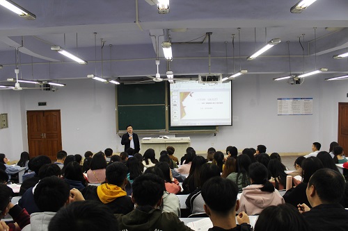 11月11日晚,学校党委副书记侯忠明教授在博文楼112教室为数学学院2018级学生讲授题为“‘五四’精神的核心要义与时代要求”的形势与政策课。数学学院党总支副书记苟格、2018级全体同学聆听本次授课。