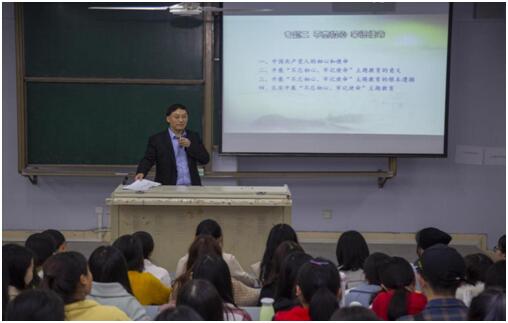 11月4日晚,学校党委书记王成端教授在博文楼328教室为外国语学院学子讲授题为“不忘初心,牢记使命”的形势与政策课。马克思主义学院院长刘长江、外国语学院党总支书记王义文、副院长刘彦仕以及辅导员、学生党员、2018级部分学生到场聆听。