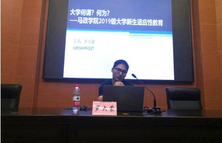 副院长罗大蒙首先向大家解释了什么是大学,从培养人才、科学研究、知识传承、服务社会四个视角分析了大学的基本职能。他认为作为大学生,在大学生涯中应着重培养四种能力,即读书、做事、做人、与人相处。接着,罗副院长从生活环境、学习方式、管理制度、人际关系等方面向同学们介绍了大学生活发生的变化,并分析了大学新生在心理上可能会存在的不适应现象,他认为同学们要学会借助多种方式做好心理调适,如宣泄、倾诉、有氧运动、建立朋友圈等。最后,罗副院长就“如何过好大学生活”提出了一些具体建议。