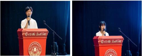 新生代表王康蔚发言,她表示将倍加珍惜期待已久的大学生活,要树立人生目标,做好职业生涯规划,砥砺前行,奋力向上,争做新时代优秀大学生。
