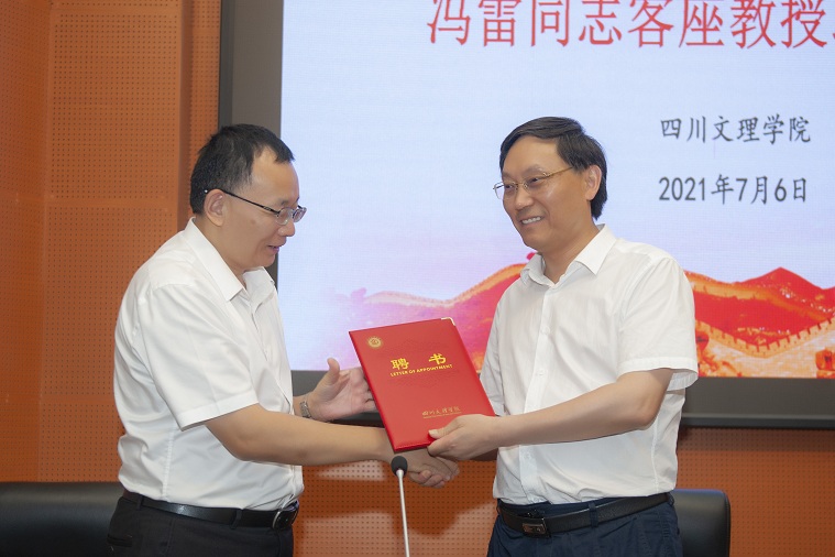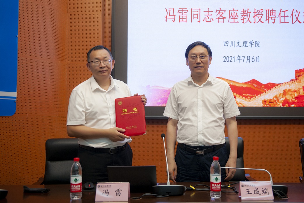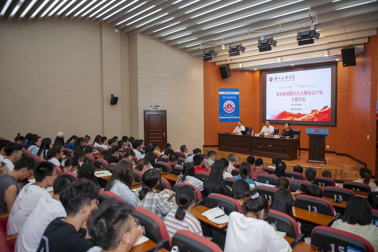 7月6日下午,四川省知识产权服务促进中心国际合作处(宣传教育中心)处长冯雷同志受聘taptap点点体育客座教授的聘任仪式暨知识产权专题讲座在学术报告厅B厅顺利举行。党委书记王成端教授出席。taptap点点体育、四川省知识产权培训(taptap点点体育)基地负责人刘春辉、刘长江出席。党委常委、副校长程碧英教授主持仪式。