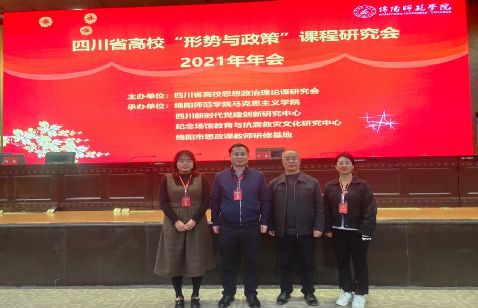 3月27日,四川省高校“形势与政策”课程研究会2021年年会在绵阳师范学院举行,全省70多所高校350余人参会,学院专职思政教师兰奎、刘永亮、杨建霞及兼职思政教师程子彪、张宇慧等人应邀参会。