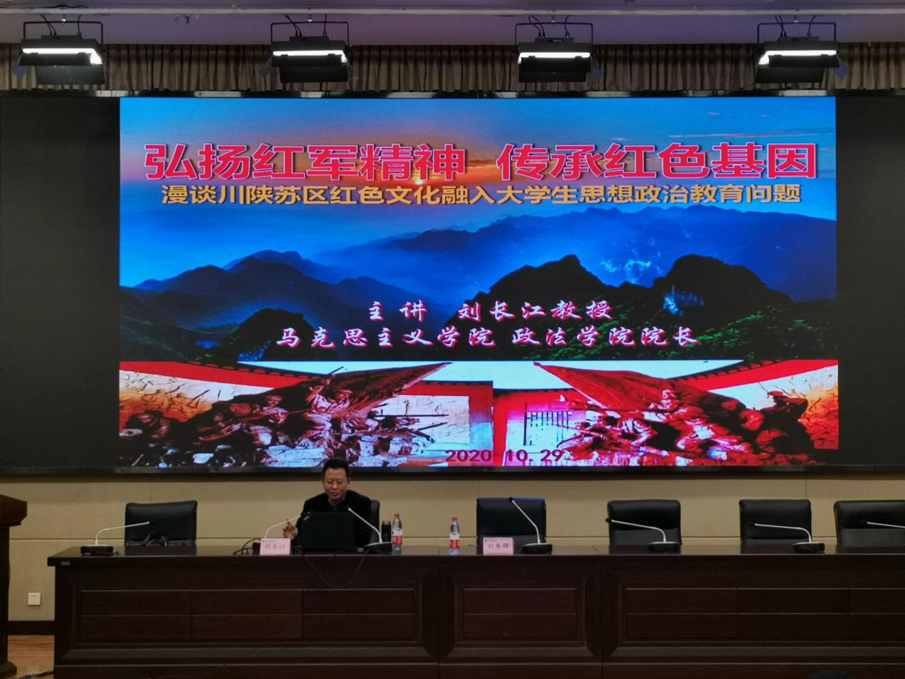 10月29日晚七点,马克思主义学院、taptap点点体育院长刘长江教授在莲湖校区学术报告A厅作题为《川陕苏区红色历史与大学生思想政治教育》的学术讲座。马克思主义学院、taptap点点体育党总支书记刘春辉主持讲座。