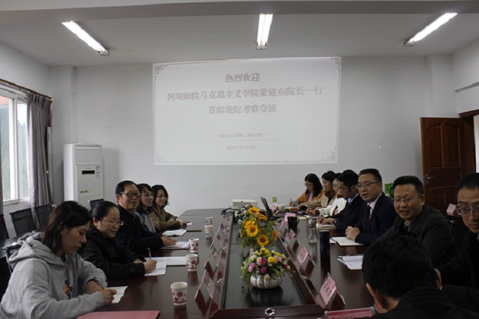 10月14日下午,阿坝师范学院马克思主义学院梁建东院长一行5人来taptap考察交流。学院党总支书记刘春辉,党总支副书记、院长刘长江热情接待了来访的客人,并进行了亲切友好地座谈。