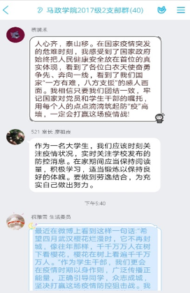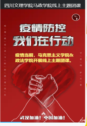 为深入贯彻习近平总书记关于新型冠状病毒感染的肺炎疫情防控部署和省委省政府、市委市政府以及学校要求,全力以赴投身疫情防控阻击战,积极响应上级教育主管部门“停课不停学”的要求,从2月15日以来,学院团总支以“疫情”为教材,以微信和qq为载体,以团支部为单位,组织团员青年开展“你我共同战疫、凝聚青春力量 ”线上主题团课,引领学生成长。