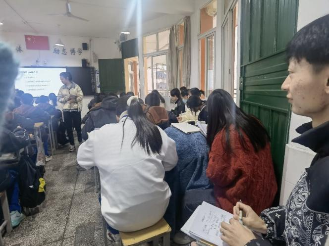 在整个见习活动中,同学们遵守各项规章制度,认真学习班主任工作流程,早六点到校,晚九点离校,学习如何关爱学生体会师德的养成,展现出师范生良好的精神风貌;认真听课并做好听课记录,课后积极主动与指导老师交流探讨,深入了解课堂教学的要求和过程;认真听取中学指导老师对见习生的意见和建议,遇到问题及时与学校带队老师交流沟通;学生组长与组员相互协调配合,同学相互之间合作探究、交流学习,体现着师范生好学上进的精神状态。在整个见习活动中,同学们遵循“多听课、多学习、多参与、多体会”的基本要求,领悟了“纸上得来终觉浅,绝知此事要躬行”的道理,体会到用“情”奠定教育之基、用“爱”浇灌生命之花、用“心”守护教育之路的教育情怀,圆满完成了见习工作任务。