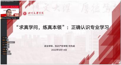 副院长何先成以“求真学问,练真本领”正确认识专业学习”为题作专业学习动员。他从“认识自己的专业、高中与大学的学习有何不同、如何调整学习状态、如何选择大学选修课、如何爱上自己的专业”六个方面进行讲话,要求同学们在专业学习上,应建立由“广”到“精”,由“横向”到“纵向”的概念,对于学业和兴趣,要尽一切可能地纵深探索、学精学细、做真做实。