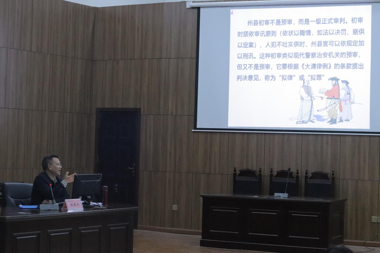 10月26日晚,院长刘长江教授在博文楼113教室作题为“从杨乃武案透视晚清司法制度之弊端”的学术讲座,党总支副书记刘良训、2020级2班、4班、2022级7班全体同学参与讲座聆听。