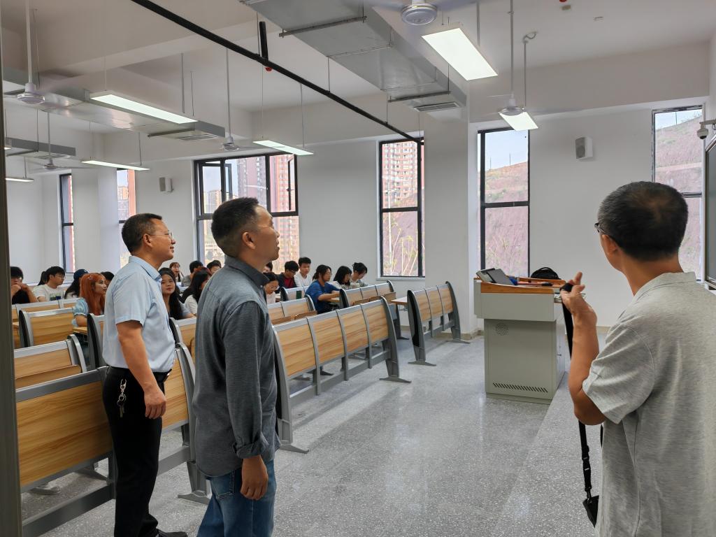 学院党委书记岳臣忠、院长刘长江、副书记刘良训、副院长何霖、教科办、学工办和各教研室主任一行通过实地查看、随机访谈、课堂听课等方式,对教学设备、教学组织、教学方法、教学效果等情况进行了重点督查,确保新学期教学工作高效率、高质量开展。