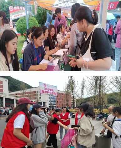9月12日至13日,学院在博文楼正门前设立新生接待服务点,热情周到开展迎新接待工作。学院党政领导携学院党政办、学工办、教科办、教研室主任及2023级各带班辅导员冒雨到场组织、指导并协调迎新工作,并为新生及其家长解疑释惑,全力保障学院迎新工作。迎新现场,志愿者们精神饱满,热情细心地为新同学们做好报到登记、住宿安排、校园卡发放等各项工作,并为他们提供入住引领、行李搬运等帮助。