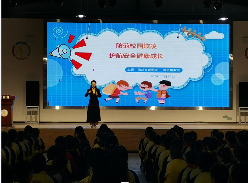 3月27日,顺应第29个“全国中小学生安全教育日”促进学生健康成长的主题,taptap曹红梅教授受邀到达州市素质教育综合实践学校来为前来参加研学实践的小学生做了一场题为“防范校园欺凌 护航安全健康成长”的讲座。