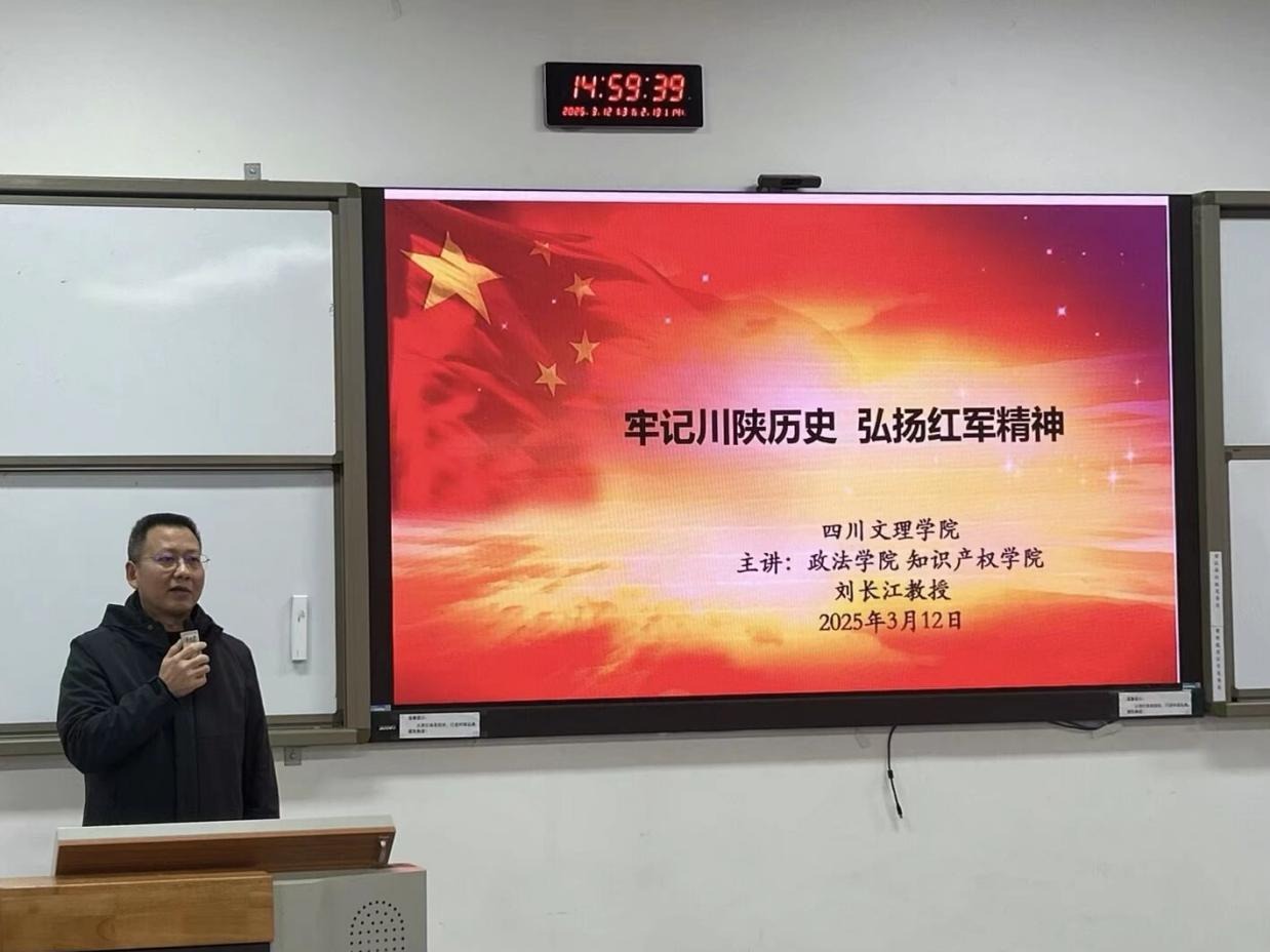 为赓续红色基因,积极弘扬红军精神,2025年3月12日下午,学院院长刘长江教授于莲湖校区东区A318教室开展“牢记川陕历史 弘扬红军精神”专题讲座。taptap点点体育2023级6班及2022级5、6、7班全体学生到场聆听此次讲座。
