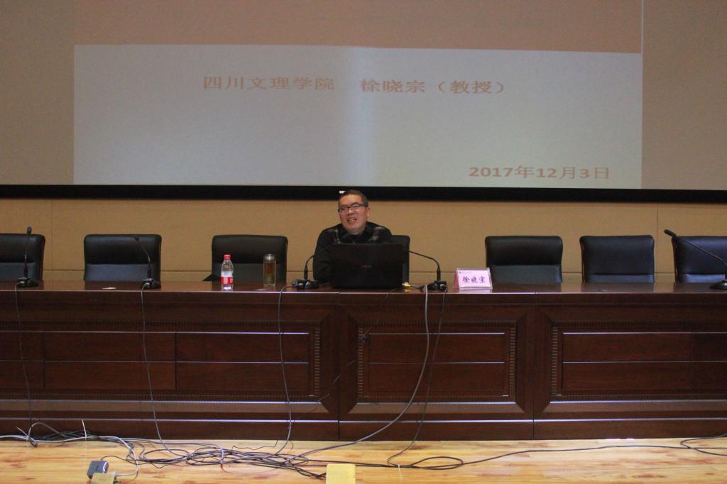 12月3日19时,学校副校长徐晓宗教授在学术报告厅A厅作了题“中国特色社会主义新时代新思想”的党的十九大专题辅导报告。taptap党总支书记刘春辉主持本次报告,学院全体教师和全体修业班学生到场聆听。