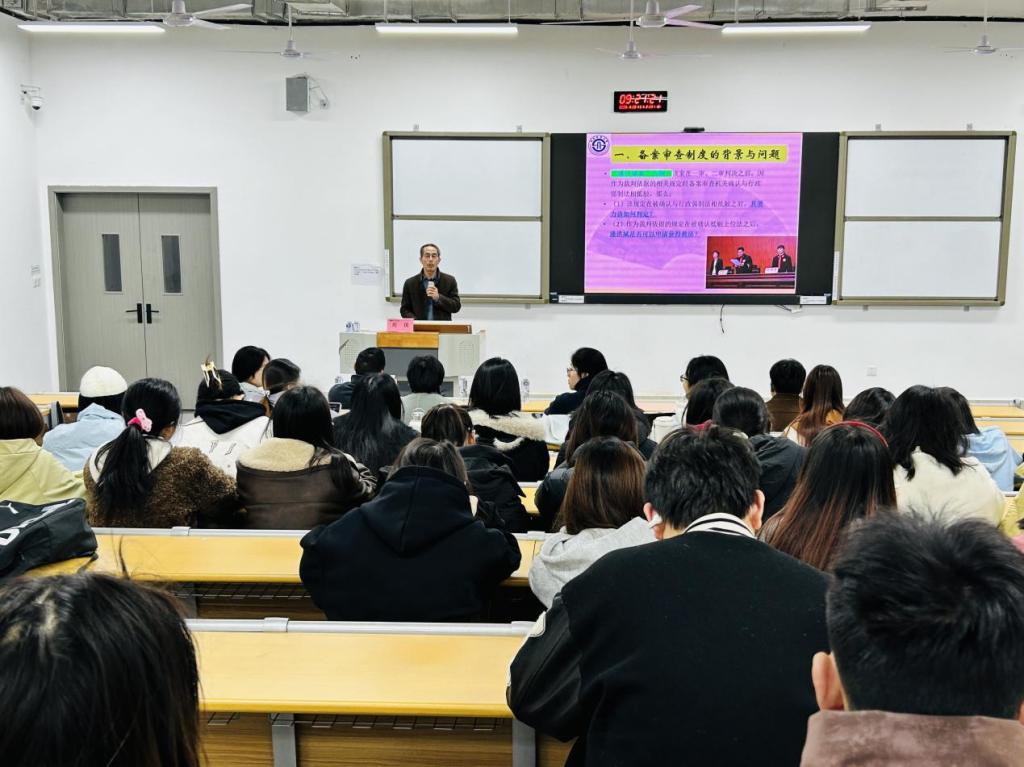 刘国教授从备案审查结果追溯力的效力认定切入,从理论层面与实践层面全面分析了不同情形下追溯备案审查结果的理论路径与实践走向,并根据现存理论路径与实践走向提出了基于备案审查结果的个案救济机制建设的的建设性实践体系。此次讲座为学院师生打开了了解地方行政过程中的备案审查制度的新视角,既拓展了学院相关专业学生的专业视野,也为促进学院科研创新提供了有益的借鉴和参考。