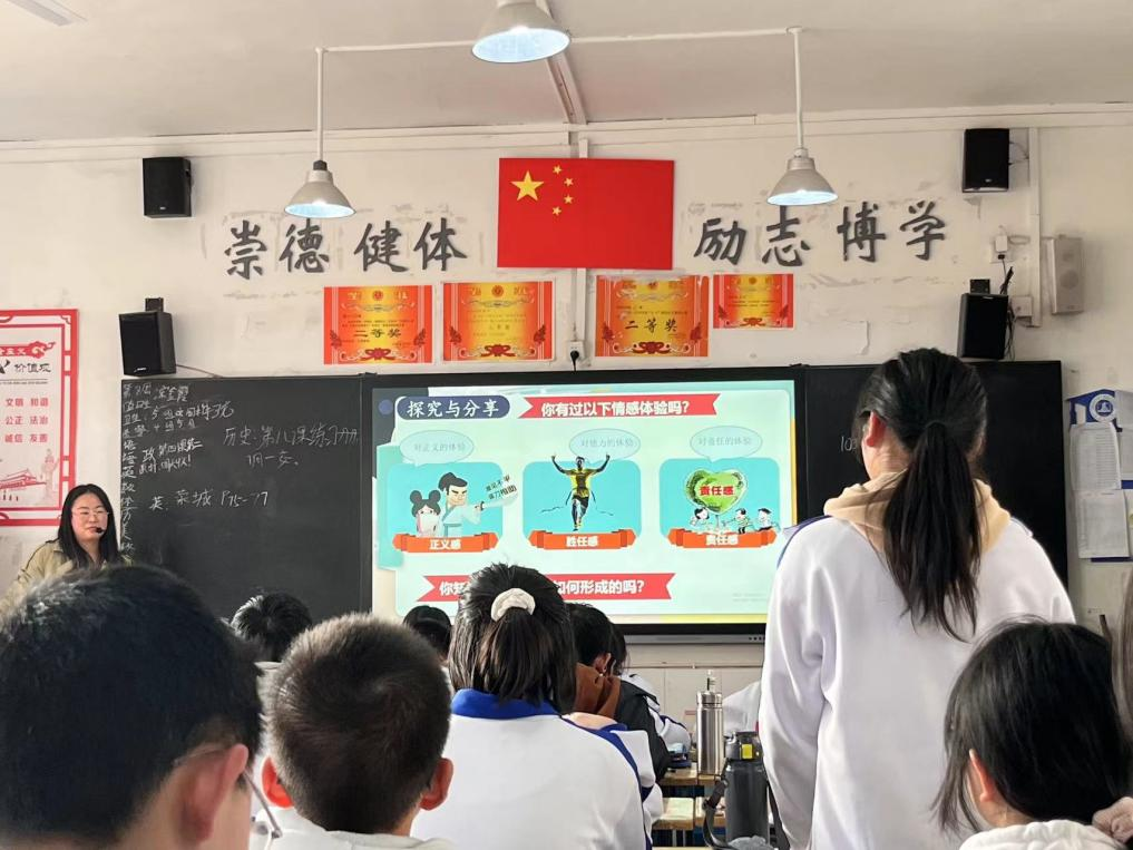 3月31日下午,taptap在达一中挂职的付凤娇老师在达一中朝阳校区初一(10)班开战了一堂精彩的《道德与法治》公开课教学,聆听此次公开课的有达州市一中的初中政治组老师、taptap思政教研室张岚老师以及2021级思政专业部分学生。
