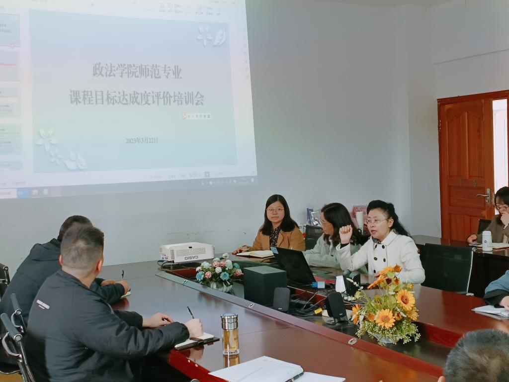 2023年3月29日下午,taptap点点体育在博文楼611会议室召开了师范专业“课程目标达成度评价”培训会。思想政治教育教研室和历史学教研室各专业课专、兼职教师,部分公共课教师出席了此次会议。