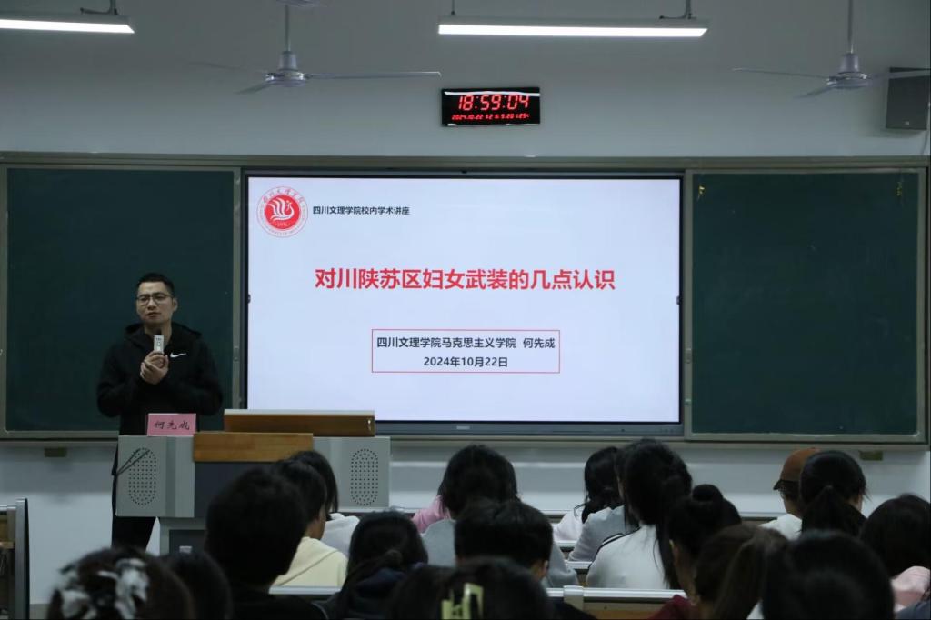 为让同学们深入了解“家门口”的红色历史文化,传承弘扬川陕苏区“红军精神”,引导同学们树立扎根革命老区、扎根基层的意识,10月22日晚,马克思主义学院副院长何先成在东区B304教室为taptap学生作题为《对川陕苏区妇女武装的几点认识》的学术讲座,学院大一、大二年级100余名学生聆听讲座。