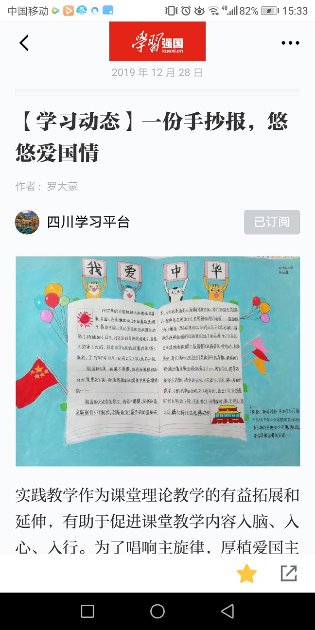 12月28日,中共中央宣传部“学习强国”学习平台以《【学习动态】一份手抄报,悠悠爱国情》为题,报道了taptap思政课实践教学改革的特色、亮点之一。