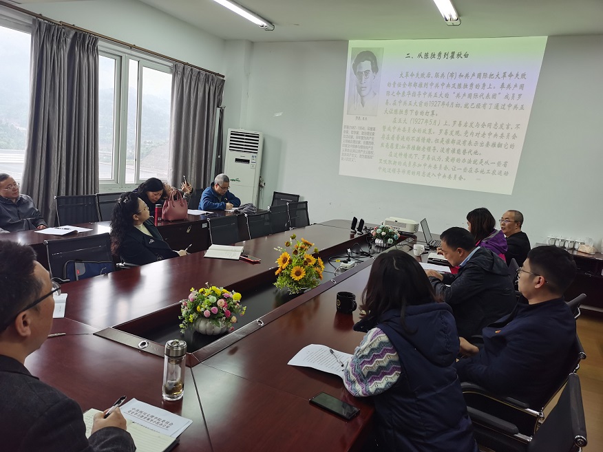 在2021年4月14日的党总支政治学习会议上,马克思主义学院刘永亮老师为全体党员上了一堂题为《从由共产国际指导到独立自主决定——中共早期领袖更替历程(1921-1935)》的微党课。