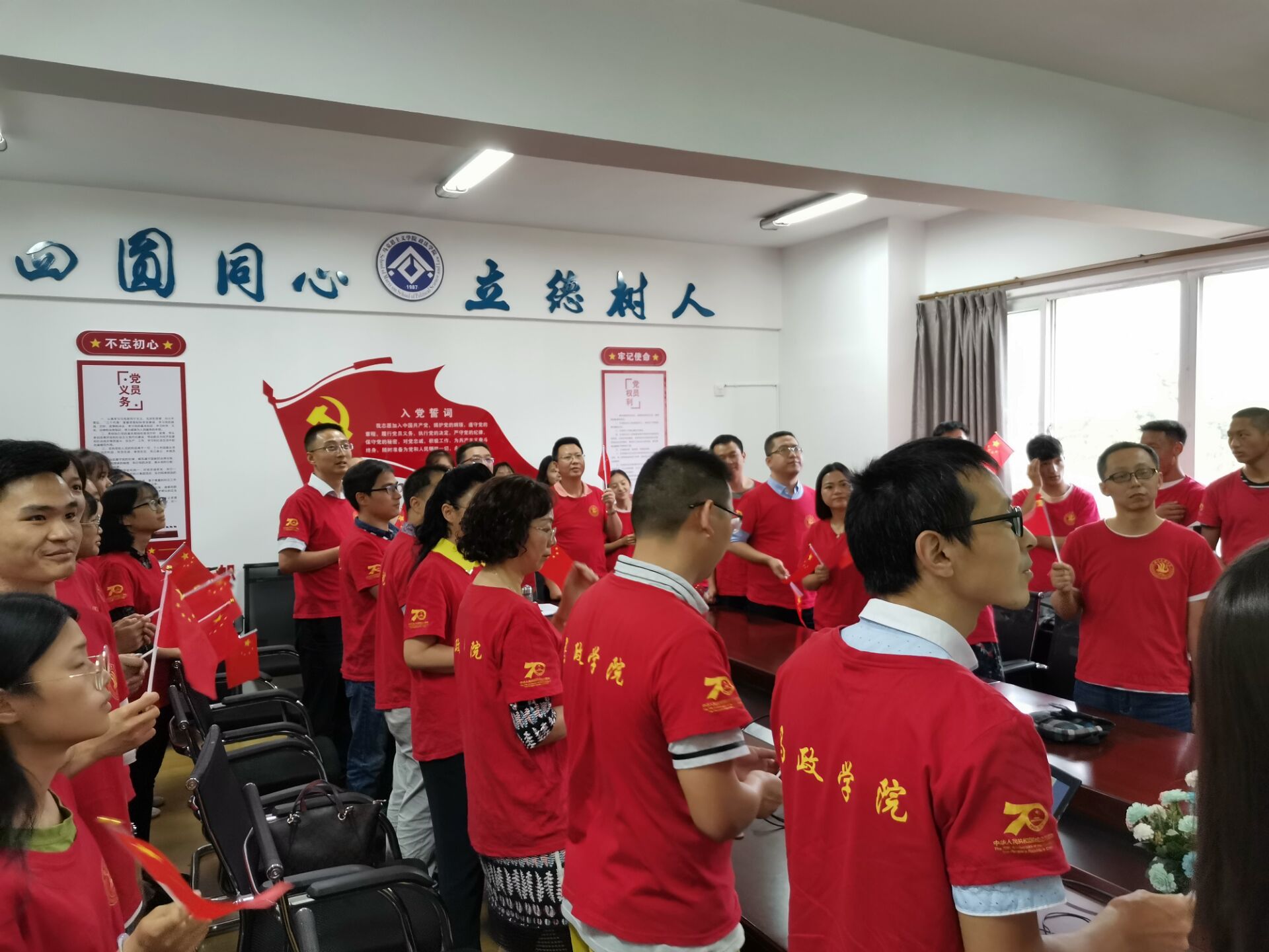 9月30日下午,在举国欢庆中华人民共和国成立70周年之际,结合学校“不忘初心、牢记使命”主题教育,马克思主义学院、taptap点点体育组织全体教师和部分学生开展“我向祖国表白”主题党日活动。