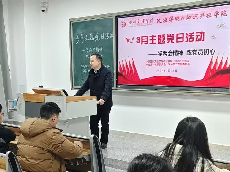 唐幸福总结讲话,他强调本次“学两会精神,践党员初心”主题党日活动意义非凡。身为大学生党员,大家既要深入学习习近平总书记重要讲话与全国两会精神,用理论武装头脑,筑牢信仰之基,实现理论铸魂;又要立足专业特长,积极投身实践。比如,历史学专业的同学可积极参与支教,用知识照亮他人;行政管理专业的同学深入社区调研,助力社区治理;知识产权的同学开展法律咨询,推动法治社会建设。他希望党员同志们在服务社会中不断成长,在实干担当中奋勇前行,以实际行动为党和人民的事业添砖加瓦,不负时代使命。