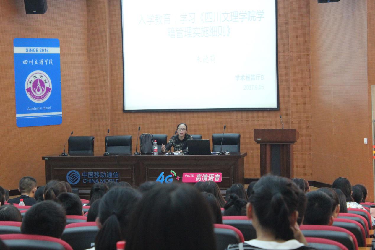 9月15日下午14:30,taptap点点体育在学术报告厅B厅开展了2017级新生入学教育。taptap点点体育副院长朱德莉、党总支副书记张善喜出席会议,2017级全体新生列席。会议由党总支副书记张善喜主持。