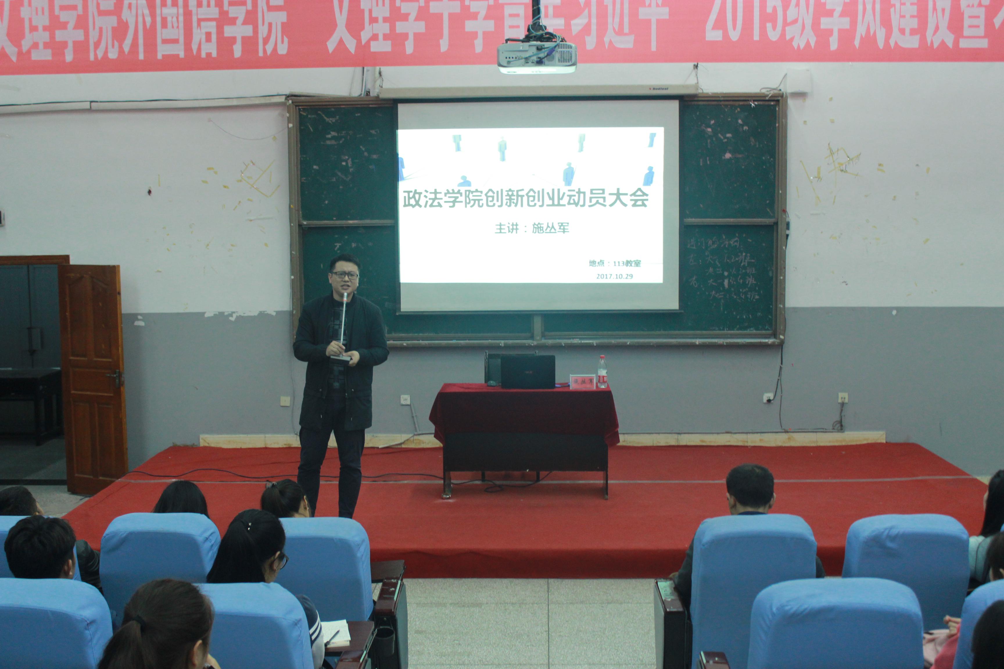 为进一步营造创新创业氛围,激发同学们的创新创业意识, 10月29日19时,taptap点点体育在一教楼113教室召开大学生创新创业动员大会。原数财学院10级校友、通川区启智培训学校执行校长、通川区青年企业家协会副会长施丛军应邀出席,党总支副书记张善喜、大一全体同学和大二入党积极分子参会。会议由辅导员刘丹主持。
