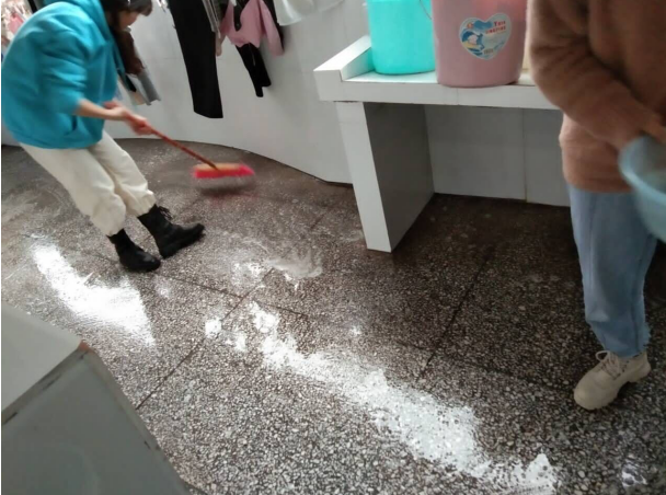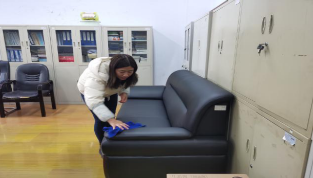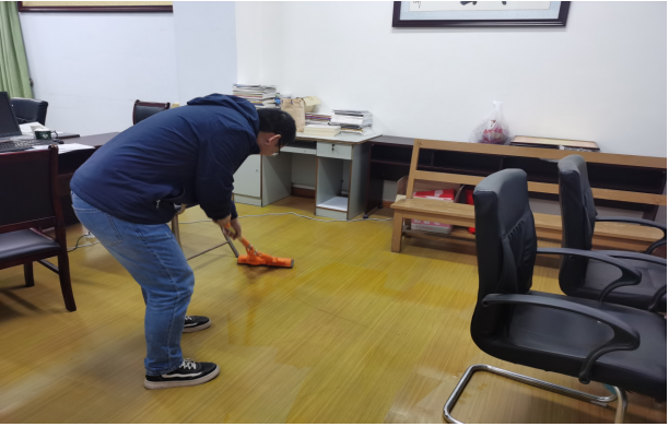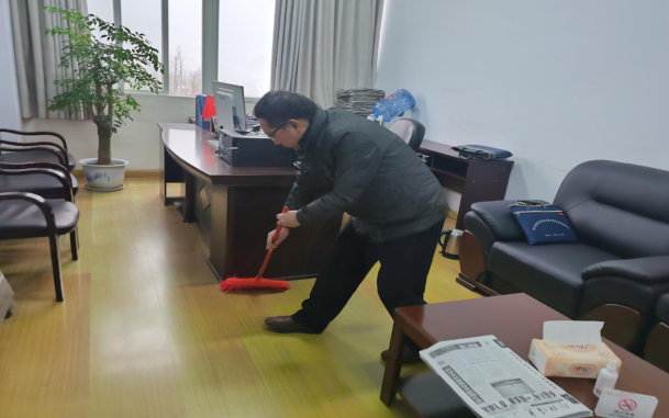 学院党政领导和办公室教师使用扫帚、抹布,对各自的办公室进行卫生大扫除,打扫地板卫生,剔除地砖上的漆痕,擦桌子,倒垃圾,干劲十足,不怕脏,不怕累,辛苦劳动,给学生们起到了良好的示范作用。