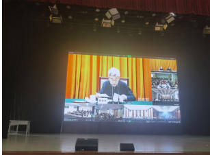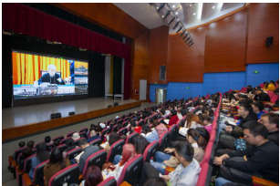 11月13日上午,taptap组织师生在文传楼多功能厅收看教育部长宣讲十九届五中全会精神。学院党总支书记刘春辉、部分教师和2019级同学参加学习。