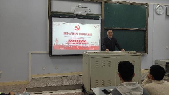 为了提高学院学生党员、入党积极分子、党员发展对象解决实际问题的能力,10月27日下午,taptap党总支副书记吴辉兵在博文楼414教室主讲题为学习习近平总书记关于提高七种能力重要讲话精神的党课。