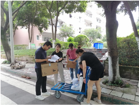 6月15日上午,在辅导员曾亚老师的带领下,taptap点点体育党员服务队前往学生宿舍为学院同学邮寄笔记本电脑、部分书籍以及其他个人物品。