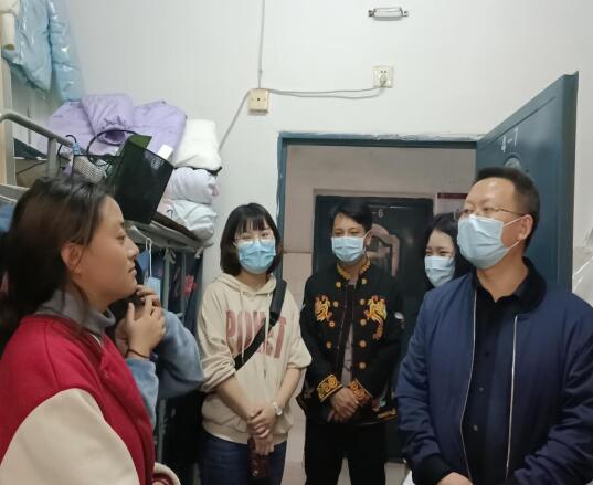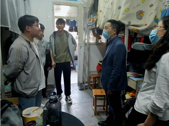 2022年3月9日下午,学院党总支书记岳臣忠、院长刘长江、党总支副书记莫春梅带领辅导员老师、学生干部分组深入学生宿舍关怀慰问学生。