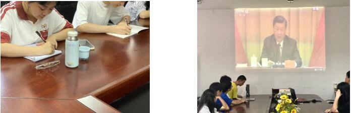 大会中,中共中央总书记习近平代表党中央,向全体共青团员和各级共青团组织、团干部致以热烈祝贺及诚挚问候。习近平总书记通过回顾共青团建团100周年历程,总结建团百年以来的伟大成就,强调党有号召,团有行动,共青团要做先锋当勇将,团结起来,振兴中华。此外,习近平总书记对中国青年给予肯定,并提出四点希望,为师生深入学习党的思想、感悟青年力量提供了新的思路和启发。观看过程中,taptap学子认真聆听习总书记的讲话,认真记笔记,学习体悟政治新思想,反思自我。