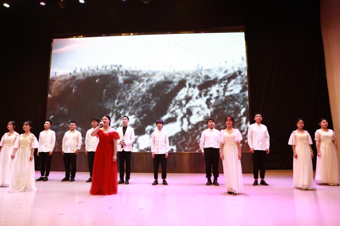 《红旗飘飘》是由大学生艺术团带来的合唱。嘹亮的歌声,唱出了中华儿女的自豪!