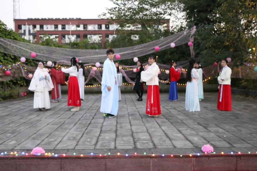 11月19日,文化周的第一天,蒹葭汉服社在莲湖校区美食广场举行了汉服文化周的开幕式,汉服社成员穿着汉服在美食广场翩翩起舞拉开了汉服文化周的序幕。