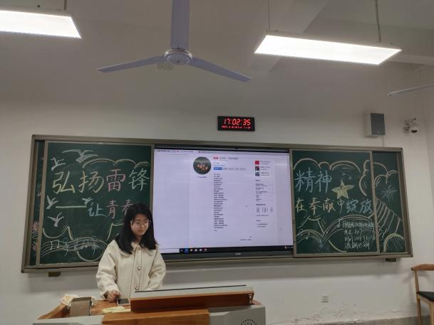 带班辅导员老师总结讲话,强调新时代团员青年应大力弘扬雷锋精神,坚定理想信念,以积极主动的态度投入学习生活中,热爱集体、助人为乐,培养社会责任感和奉献精神,自觉参与志愿服务,扎实推进学习生活,刻苦学习,认真钻研,用实际行动践行雷锋精神。