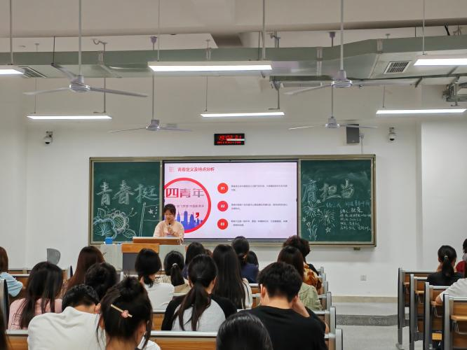 各班团支书带领大家共同学习五四精神的发展历程和思想内涵,并以五四运动中的重要人物为例,引导同学们领悟五四精神的当代意义,激励大家弘扬五四精神,树立远大理想,炼就过硬本领,肩负起为中国式现代化挺膺担当的青春责任。