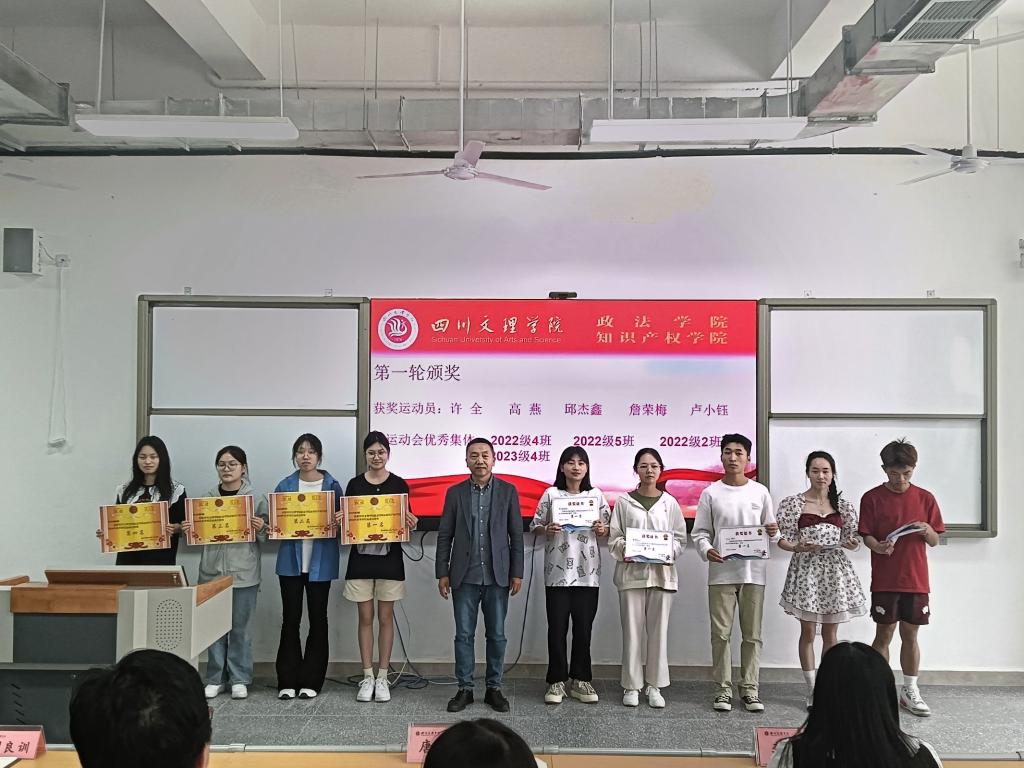 学院领导和老师为学校第十四届田径运动会获奖运动员、学院田径运动会优秀班集体颁发奖状。学院团总支学生会文体部、素拓部、监察部负责人对部门工作总结发言。学工办主任唐幸福对前期学生工作总结并对近期工作部署。