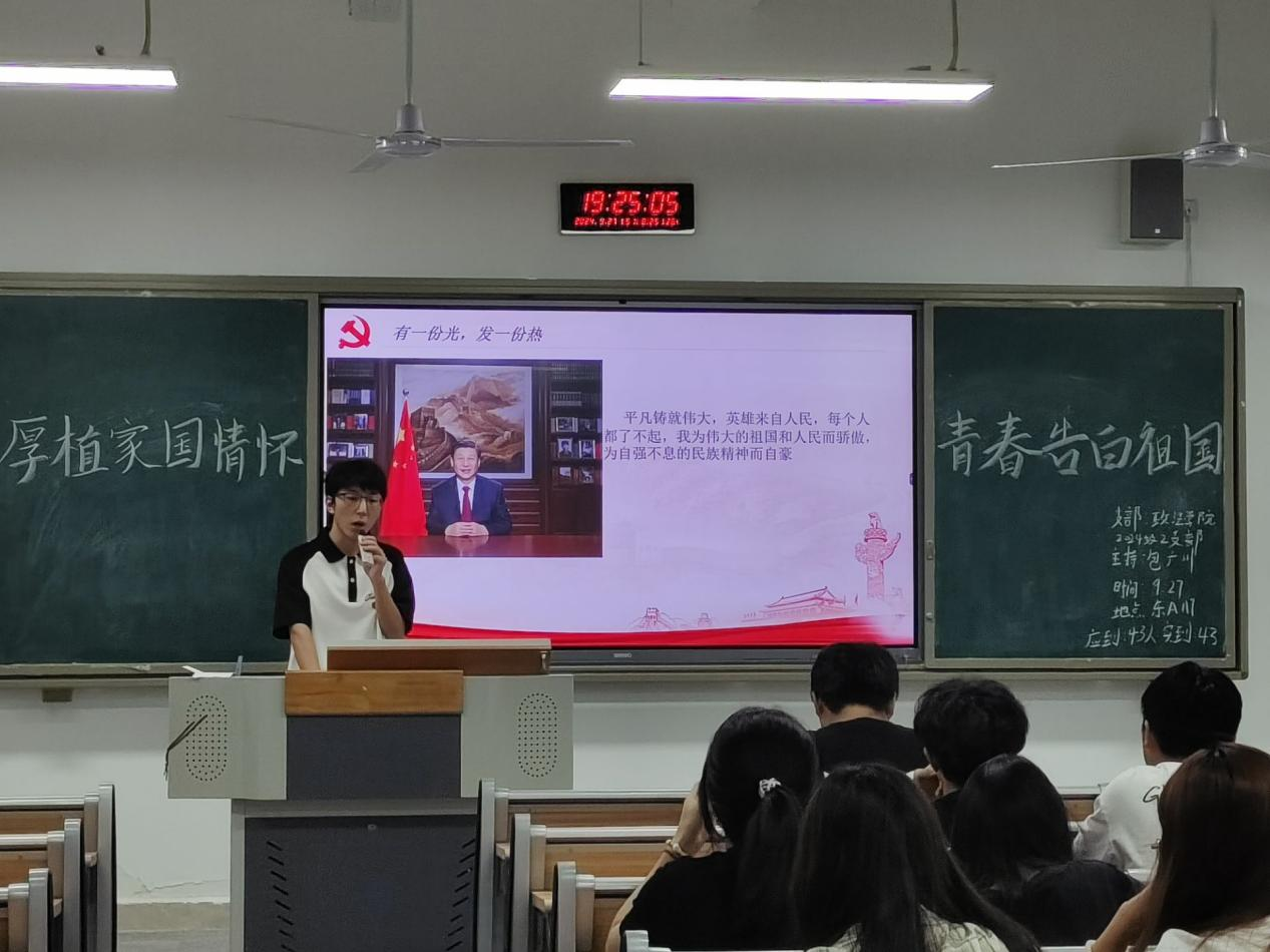 为深入学习贯彻新时代中国特色社会主义思想,增强团员青年的家国情怀,激发青春奋斗精神,引导团员青年厚植家国情怀,用青春回报祖国,为实现中华民族伟大复兴的中国梦贡献青春力量。2024年9月27日下午,taptap各班在莲湖东区教学楼开展了以“厚植家国情怀——青春告白祖国”为主题的团会。各班团支书主持,带班辅导员老师与全体同学参加。