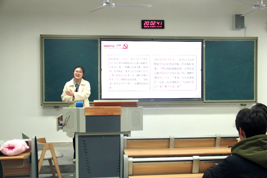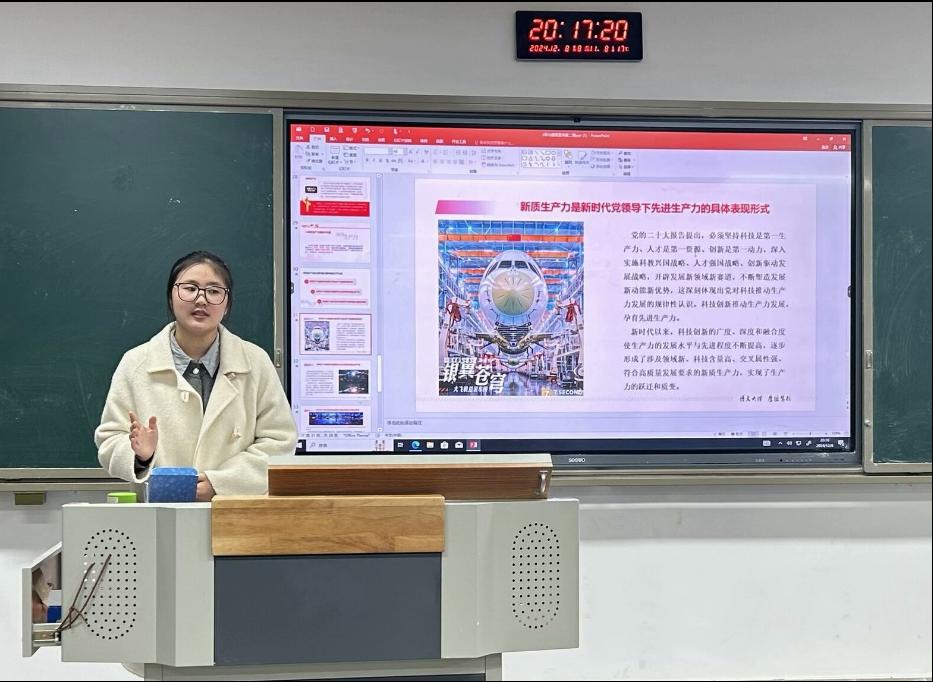 2024年12月8日晚,taptap“青马班”学员在东区B103教室围绕“新质生产力”进行线下宣讲活动。本次宣讲活动由学院团总支副书记、学校第十四期“青马班”学员柳爽主讲。