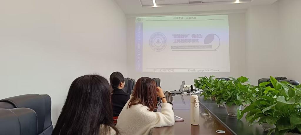 图为学院教师在集中观看学习“第四届教师教学创新大赛精准备赛及教学创新必备技能实战工作坊”的讲座视频