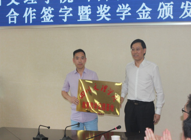 接下来,邓杰处长和田金陇主任分别代表双方签署校企合作协议。王成端书记代表学校向四川果然律师事务所授“taptap点点体育教育教学实践基地”牌匾。然后,邓杰处长宣读了2017-2018学年“果然奖学金”获奖名单,李魏、王顺平、何秀霞、王潇、任静欢、王川江等6名同学分别获得一二三等奖学金。朱世健和周健主任代表果然律师事务所向获奖学生颁奖。之后,李魏代表获奖学生发言,他首先对学校和四川果然律师事务所的培养与关心表示由衷感谢,他介绍了自己在文理学院的成长经历以及在律师事务所见习的收获,并誓言将荣誉化作动力,今后更加努力地学习和工作。