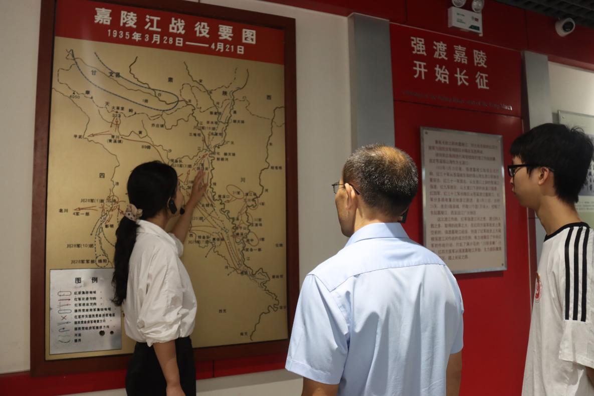 座谈会结束后,在景区讲解员的引导下,团队一行先后参观了功勋馆、红军街、渡江指挥部旧址、红军渡纪念馆、将帅台、渡江雕塑、长征精神火炬传递苍溪火种采集点、红军石刻标语碑廊、红四方面军强渡嘉陵江遗址等红色景点。参观过程中,同学们通过仔细聆听生动详实的讲解,近距离瞻仰革命文物,深度阅读历史图文资料,沉浸式感悟革命先辈的奋斗历程,深刻体会到苍溪红色文化的深厚底蕴与时代价值。