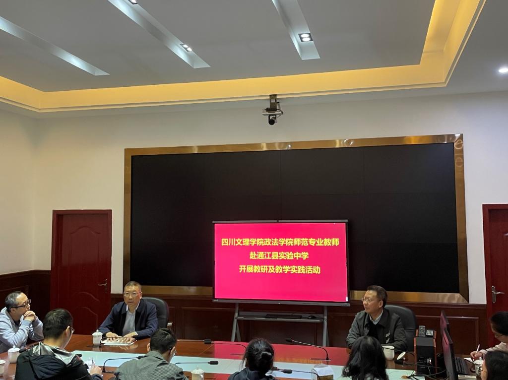 优秀校友、通江县实验中学王兴周校长热情地接待了我们,他分别从学生综合发展、高考上线率、学校教育教学和管理等方面介绍了通江县实验中学的情况,对中学思想政治和历史课程教学教研以及师资情况做了重点介绍;刘长江院长就优秀校友对学院发展的关切表达了感谢,并从历史沿袭、专业情况以及社会服务等几个方面介绍了学院近几年的发展,阐明了此次教研及教学实践活动的目的在于从中学教育教学的实际出发,明晰中学思想政治、历史教学对高校思想政治教育、历史学专业的培养需求。