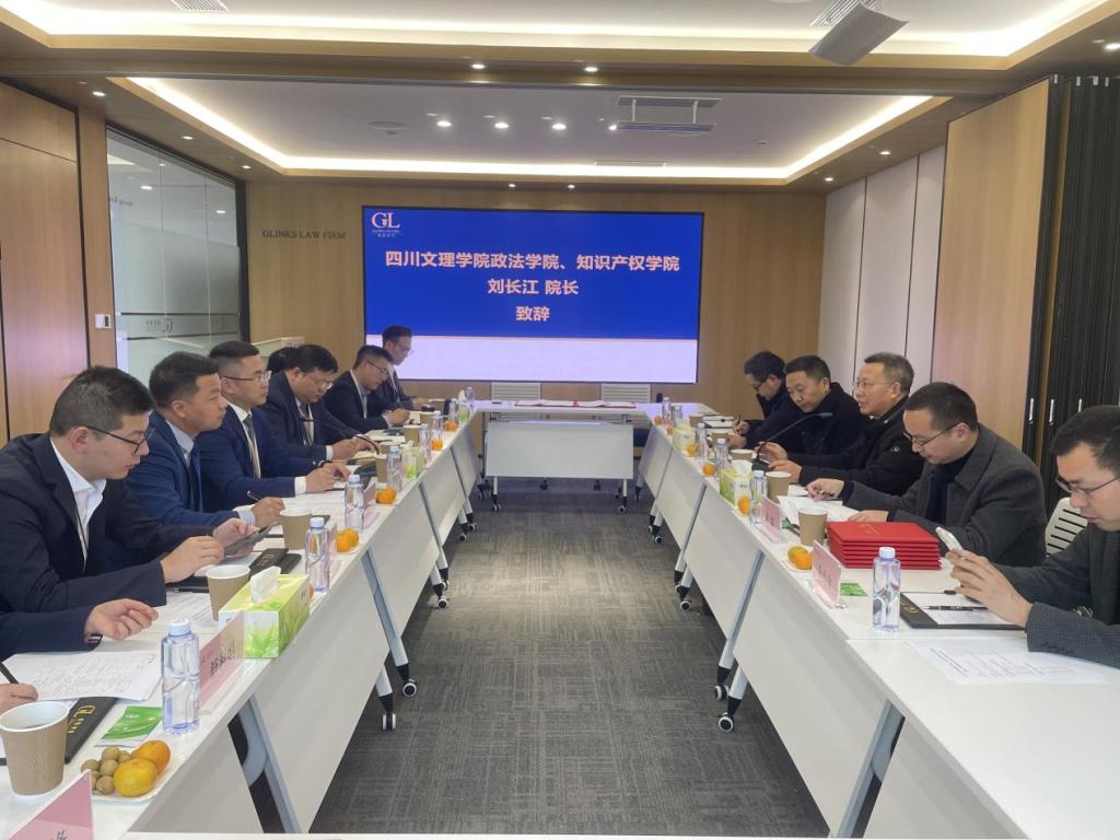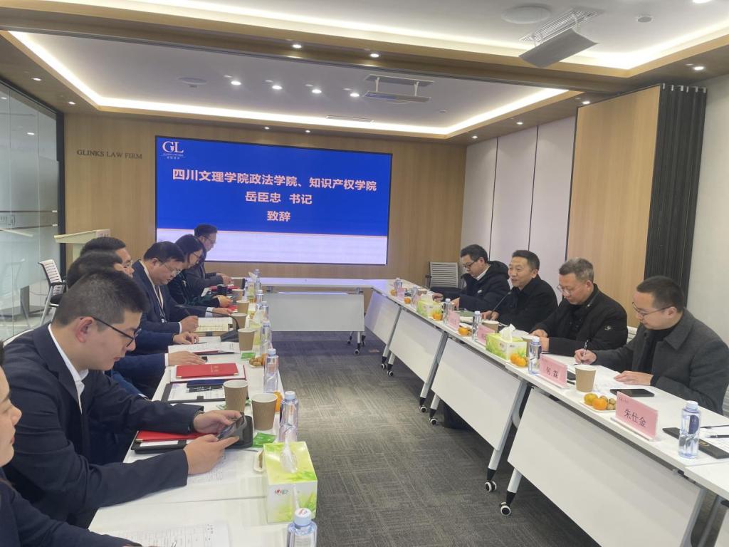 岳臣忠介绍了学院的办学特色、知识产权学科和基地建设成果,期待在法治人才培养、专项课题研究、人员交流、定期互动培训等方面与上海格联(成都)律师事务所达成深度合作,以学院的理论支持,结合律所的实务力量,发挥一加一大于二的效果。