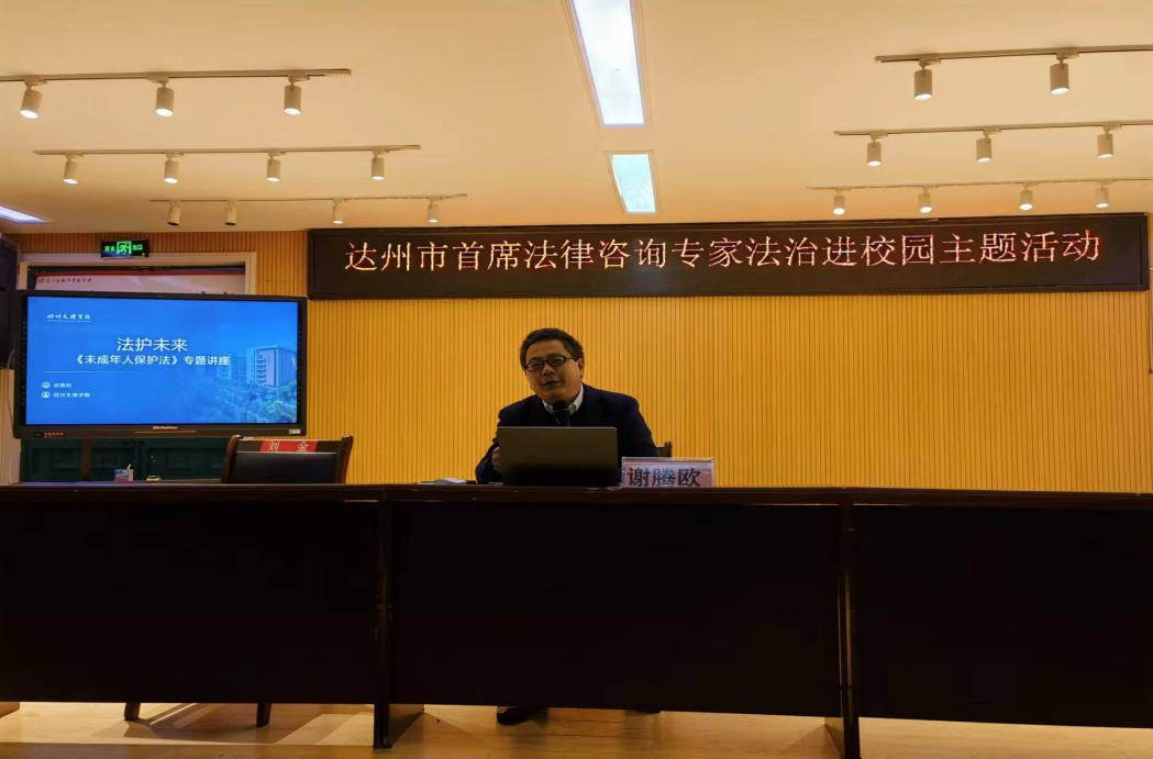 11月30日,达州市第一届首席法律咨询专家、taptap教师、四川省知识产权培训(taptap点点体育)基地办公室主任谢腾欧应邀为通川区魏兴实验学校学生作“法护未来”《未成年保护法》专题讲座。