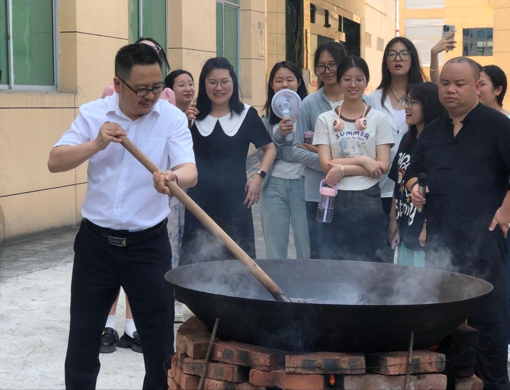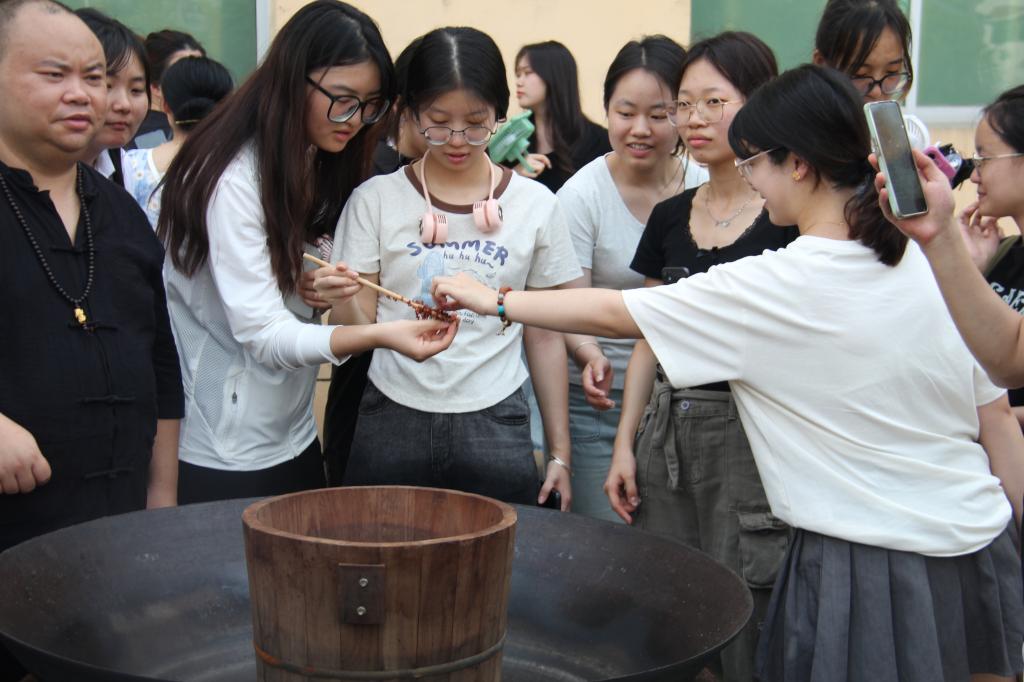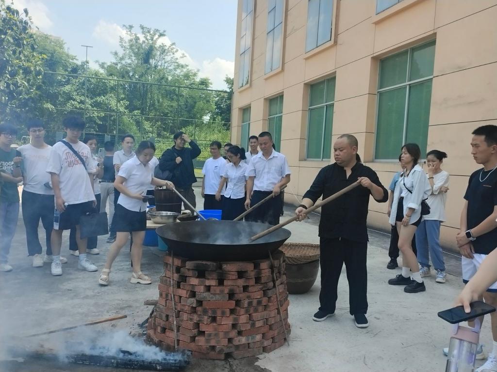 24日下午,国家级非物质文化遗产---渠县呷酒酿造技艺的传承人张清平向同学们现场展示了呷酒酿造过程。同学们亲身体验了选料、浸泡、煮沸、蒸煮、散热、下药的各项工序。通过对非遗技艺的体验,同学们进一步了解了呷酒制作过程,感受了工匠精神。